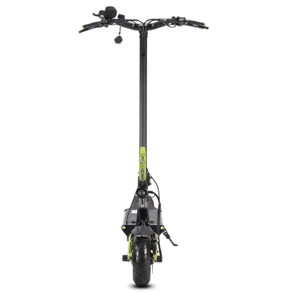 11-дюймовые накатистые колеса в сочетании с двигателем мощностью 3600 Вт способны развивать скорость до 75 км/час. Запас хода составляет 70 км. С  такими параметрами покупка дополнительных средств безопасности для ездока является обязательной. Модель выглядит привлекательно и современно. Оснащена вместительно прорезиненной платформой. Рулевая часть – удобная, оснащена нескользящими грипсами. Имеет информационный дисплей, благодаря которому пользователи способен мониторить скоростные показатели, степень заряда батареи и другие. Своевременность остановки обеспечена современной гидравлической тормозной системой. Наличие эргономичное подножки допускает парковку в труднодоступные места. Для заказа тс быстро предлагаем связаться с нами прямо сейчас.