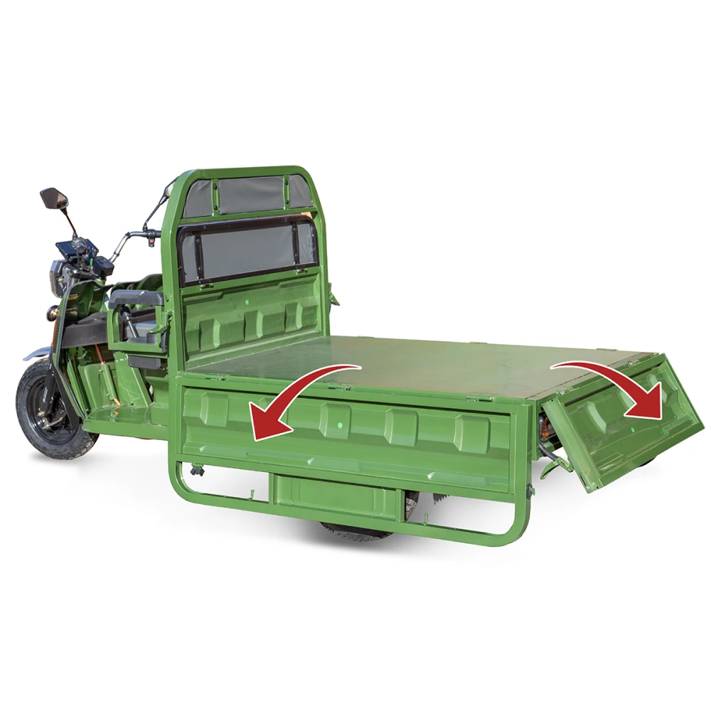 Грузовой электротрицикл Rutrike Маяк 1500 60V1000W зеленого цвета - это надежное и эффективное транспортное средство, предназначенное для перевозки грузов на небольшие расстояния. С его помощью вы сможете легко и быстро перемещать различные грузы с максимальной нагрузкой до 600 кг.