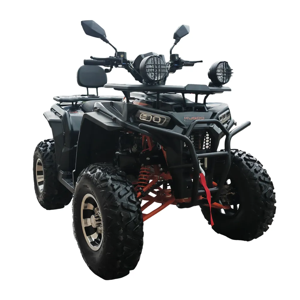 Kugoo K4 PRO — это не просто квадроцикл, а универсальный инструмент для тех, кто ценит надёжность, скорость и проходимость. Построенный на прочной раме, с высоким клиренсом 160 мм и внушительным дорожным просветом, он готов к покорению пересечённой местности, песчаных дюн, лесных троп и каменистых подъёмов.