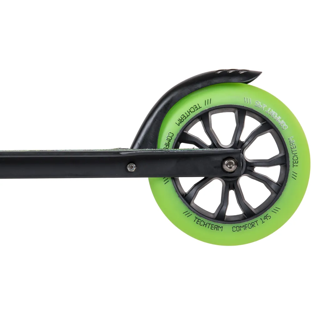 Самокат Tech Team COMFORT 145R 2022 черно-зеленый понравится необычным дизайном и заметностью. Техника рассчитана для езды по городской местности и парковой зоне. Брендовые логотипы и особое отношение к оформлению по достоинству были оценены пользователями. Приобрести модель выгодно, получить бесплатную консультацию предлагает наш интернет-магазин.