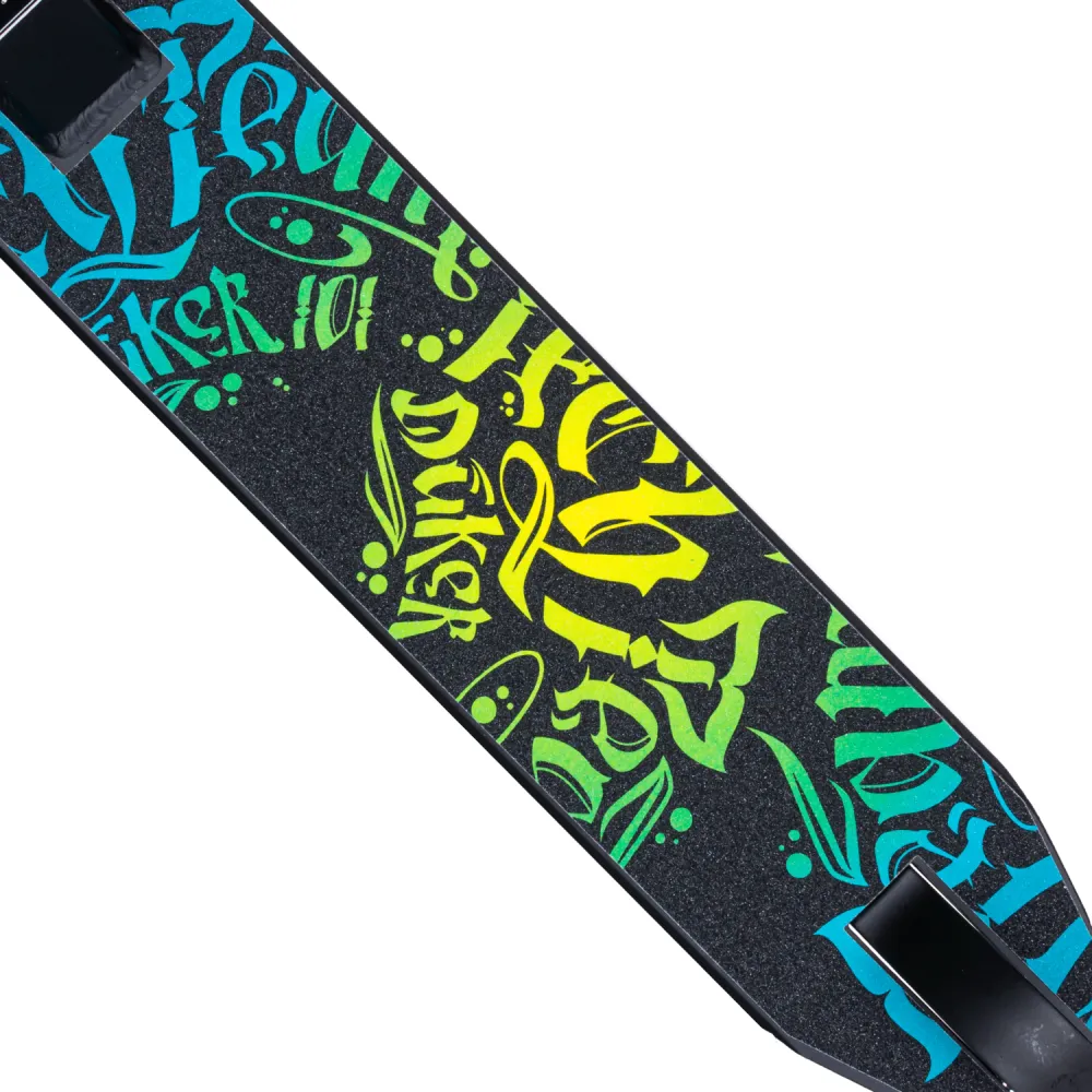 Tech Team Duker 101 2021- это трюковый самокат 2021 года с крутым дизайном. Если экстрим не для вас или надоест, то можно просто ездить по городу с ветерком. Аппарат рассчитан на детей от 8 лет, высота руля составляет 57 см, он легко регулируется под рост ездока. Руль и вилку производители сделали из тяжелого, но надежного материала-стали. Дека, как и на большинстве самокатов, сделана из алюминия. Она легкая и при этом прочная. Диски колёс состоят из алюминия, так что надёжность обеспечена. К тому же такие диски выглядят выигрышнее, чем из простого пластика. IHC-один из видов компрессионных систем. Именно она установлена на Tech Team Duker 101 2021. IHC Легче, чем обычная HIC-система.