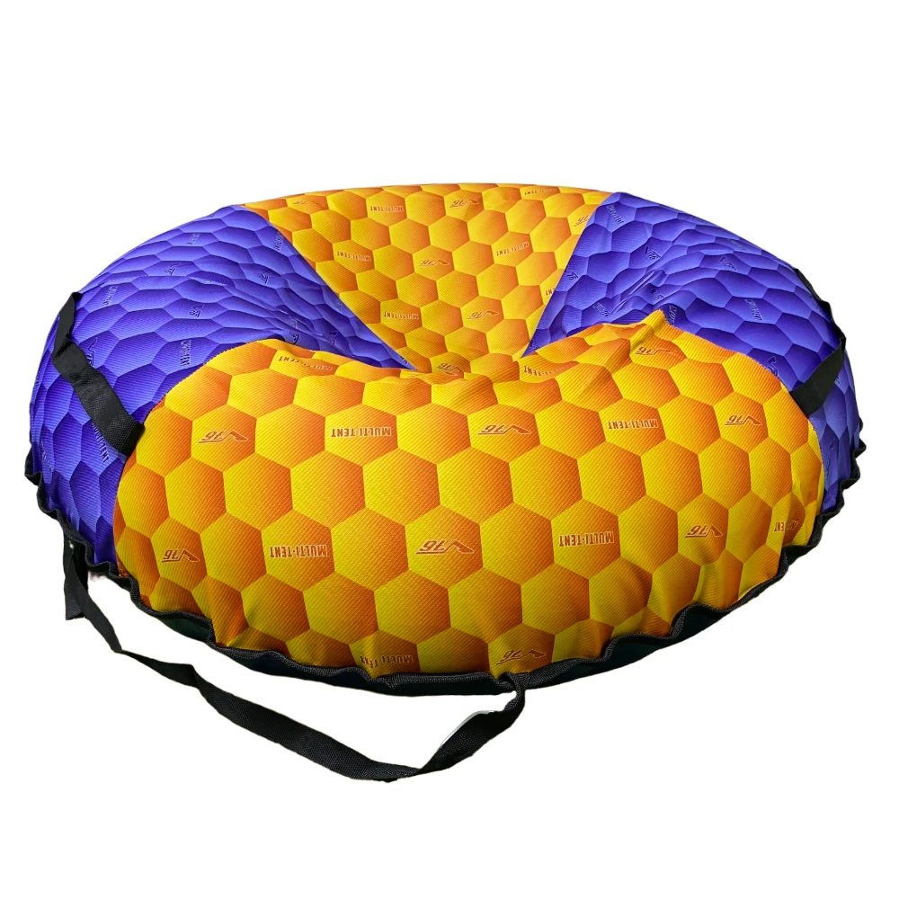 Рисунок с сотами в желто-фиолетовых цветах придает тюбингу уникальность и стиль. Он создает атмосферу веселья и радости, привлекая внимание своим оригинальным и ярким дизайном.