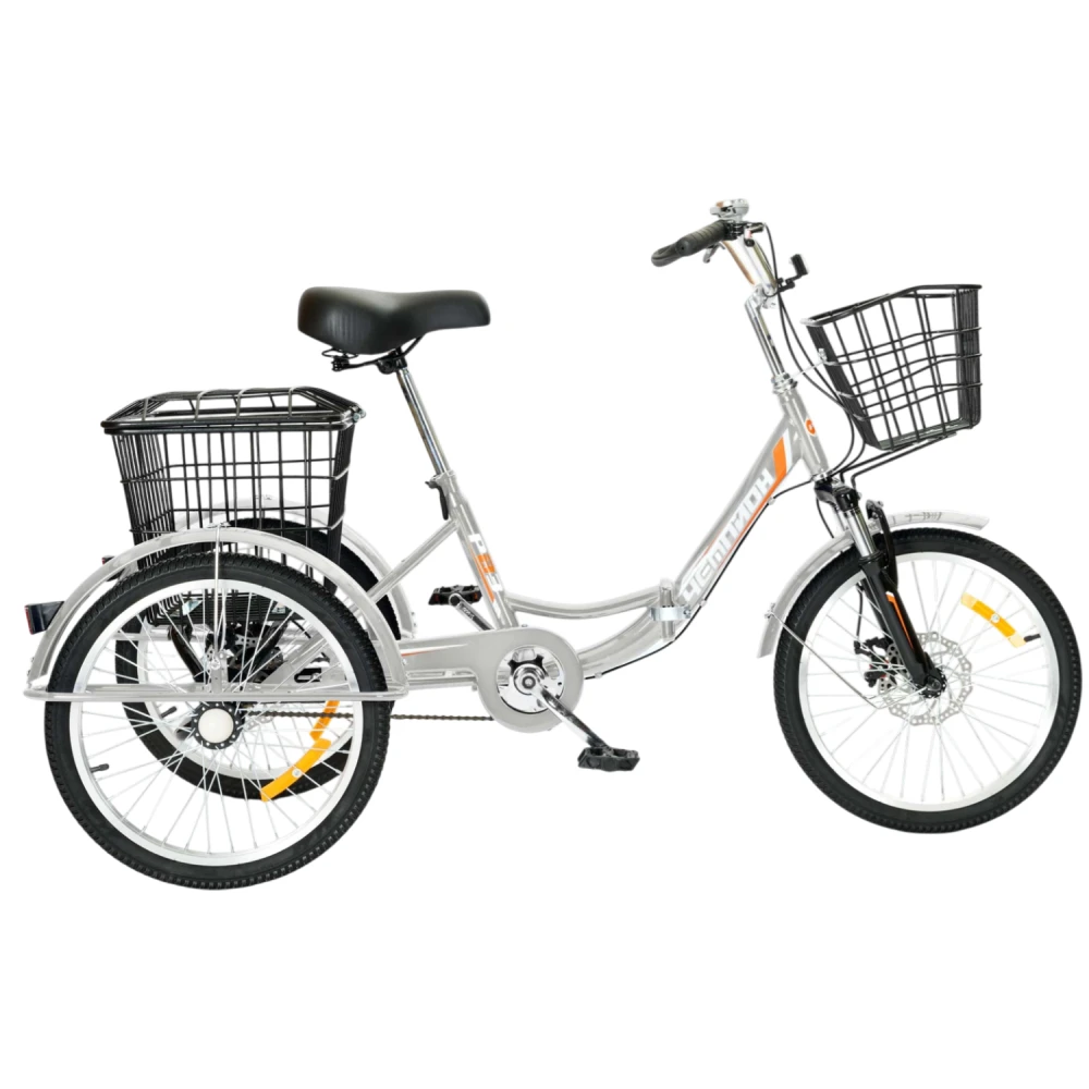 Трехколесный велосипед для взрослых РВЗ Чемпион 20" 1 скорость (складной) серебристый